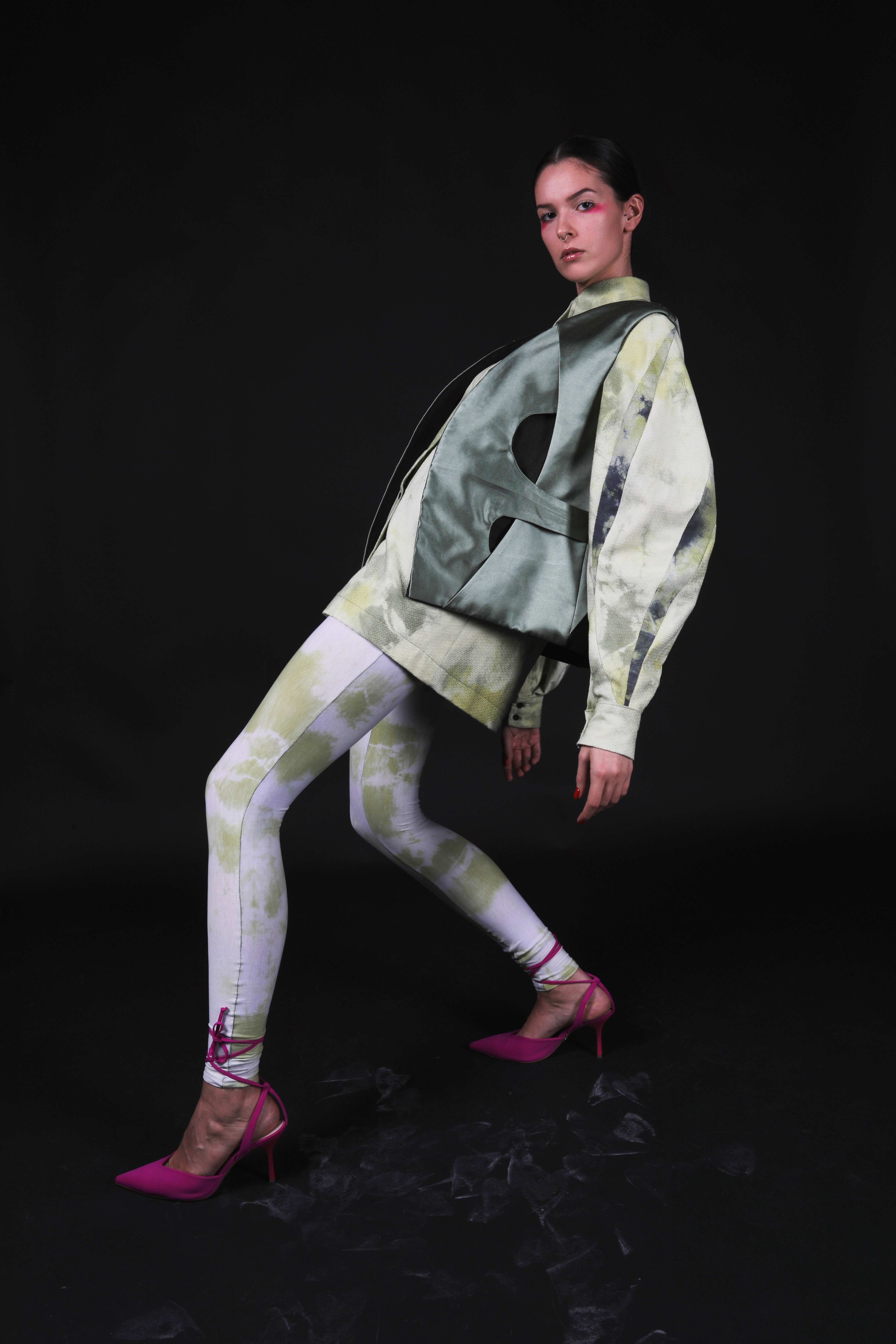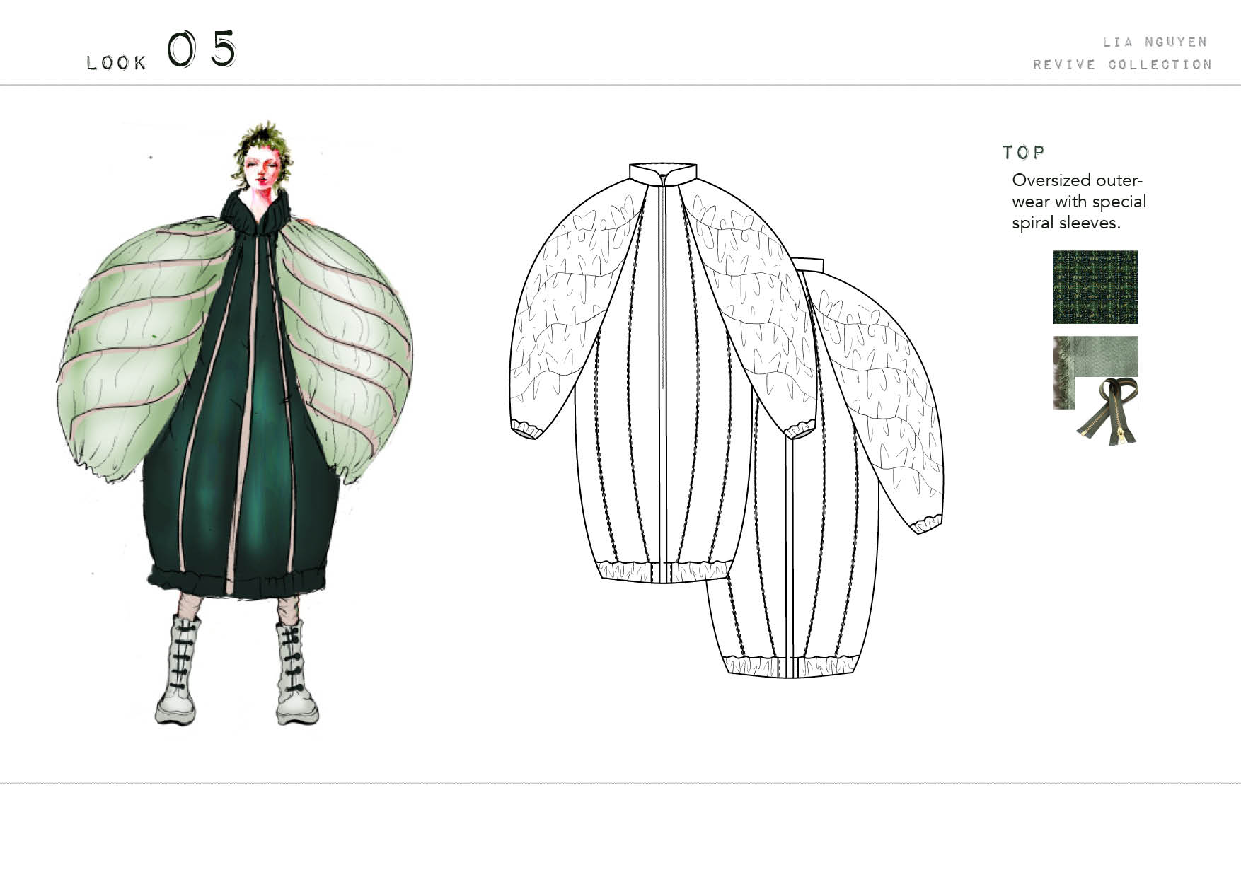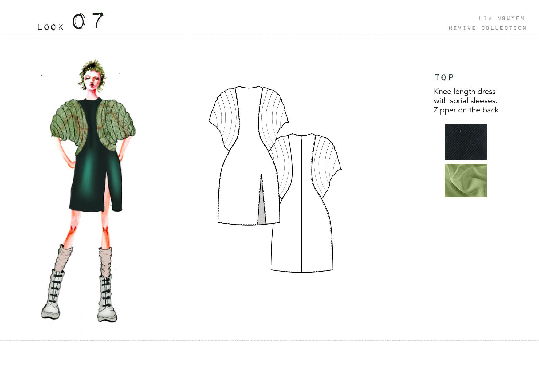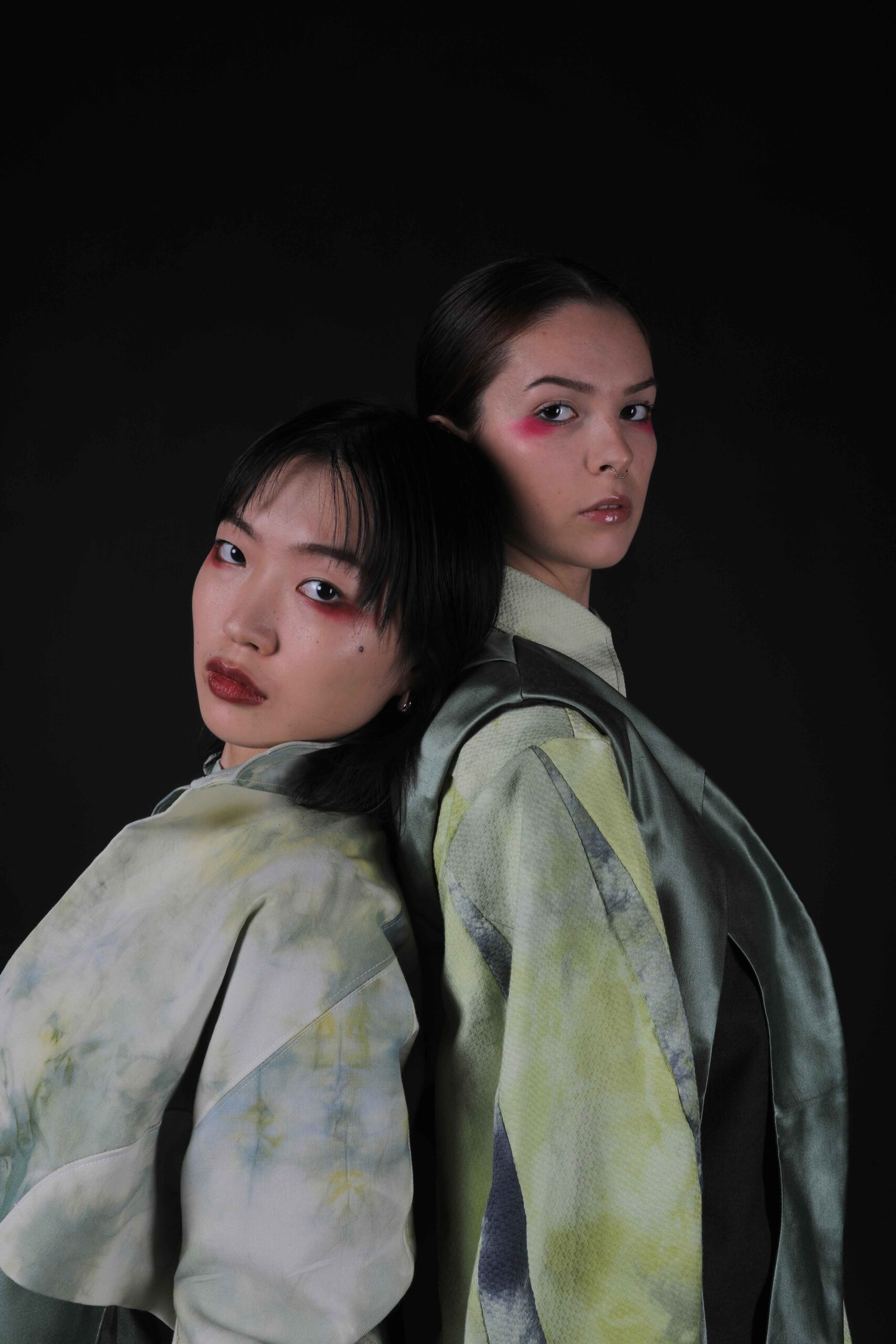 In the early morning, I waked up, I felt so lonely, depressed and disconnected with everything. I headed to the park at dawn. It was DARK, FOGGY, MISTY but the dew on the leaf was CLEAR and PURITY. I was astonished. Then the sun rose, things are vapored quickly. Life is tough in every stage. But there is always something joyful and beautiful. Be positive and appreciate the difficult moment of our life. The collection is the way I express my nostalgia, remembrance and darkness through the spiral pattern and tie-dye textiles.