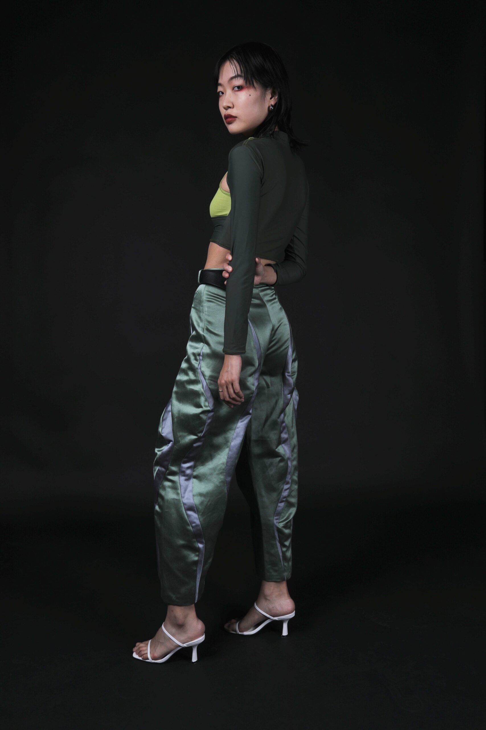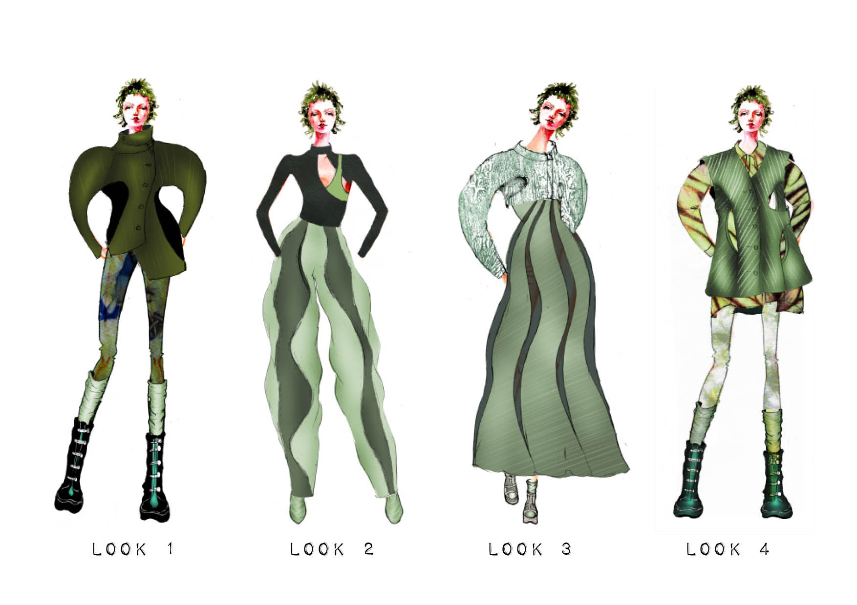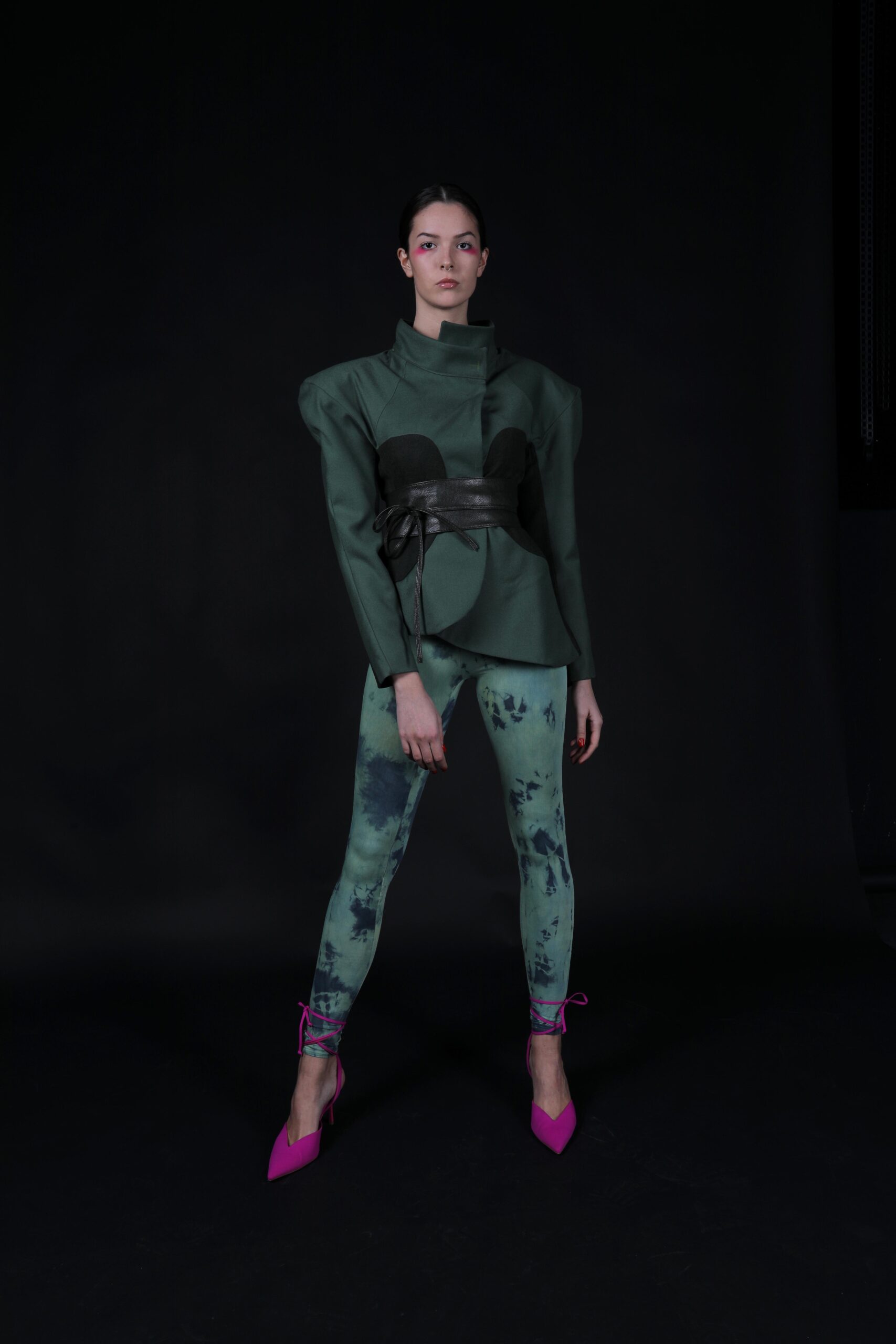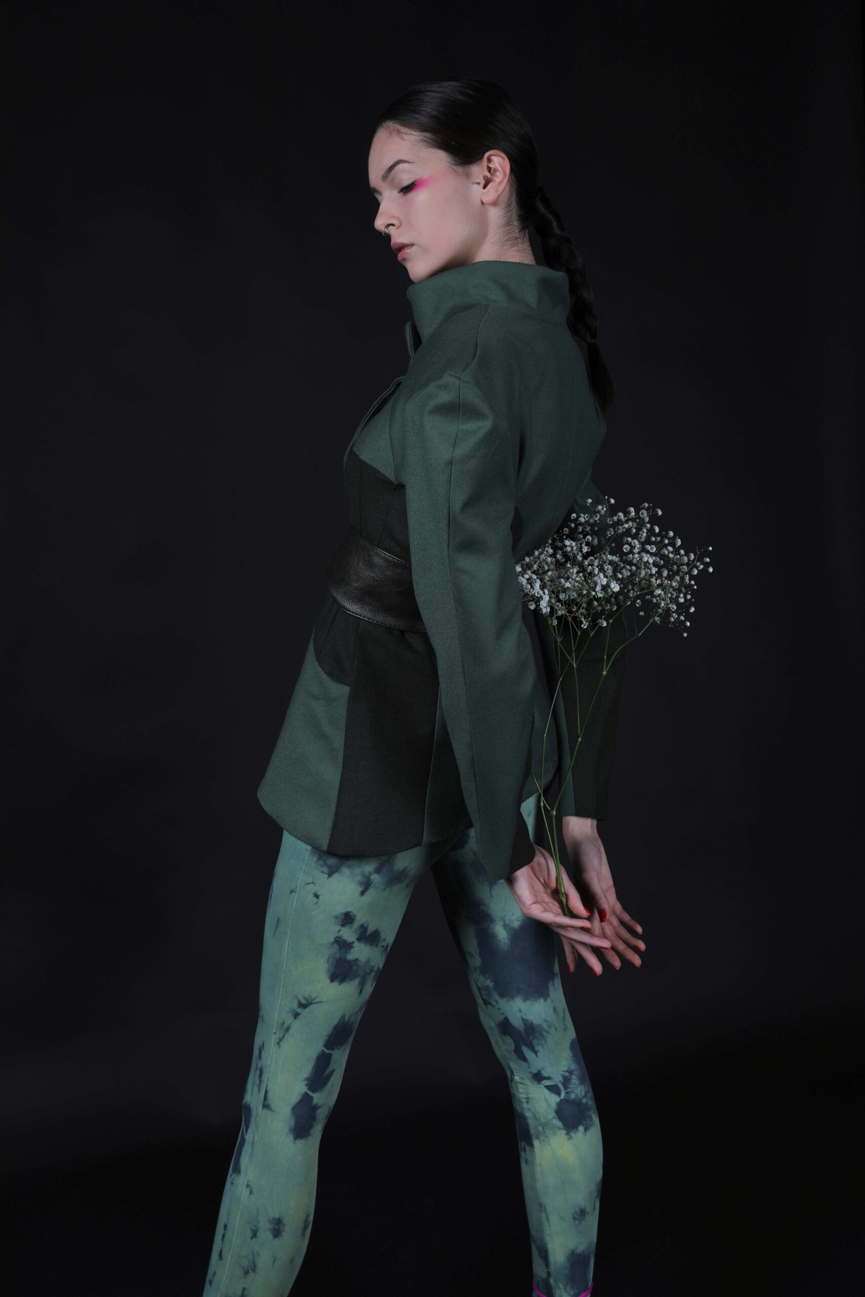 In the early morning, I waked up, I felt so lonely, depressed and disconnected with everything. I headed to the park at dawn. It was DARK, FOGGY, MISTY but the dew on the leaf was CLEAR and PURITY. I was astonished. Then the sun rose, things are vapored quickly. Life is tough in every stage. But there is always something joyful and beautiful. Be positive and appreciate the difficult moment of our life. The collection is the way I express my nostalgia, remembrance and darkness through the spiral pattern and tie-dye textiles.
