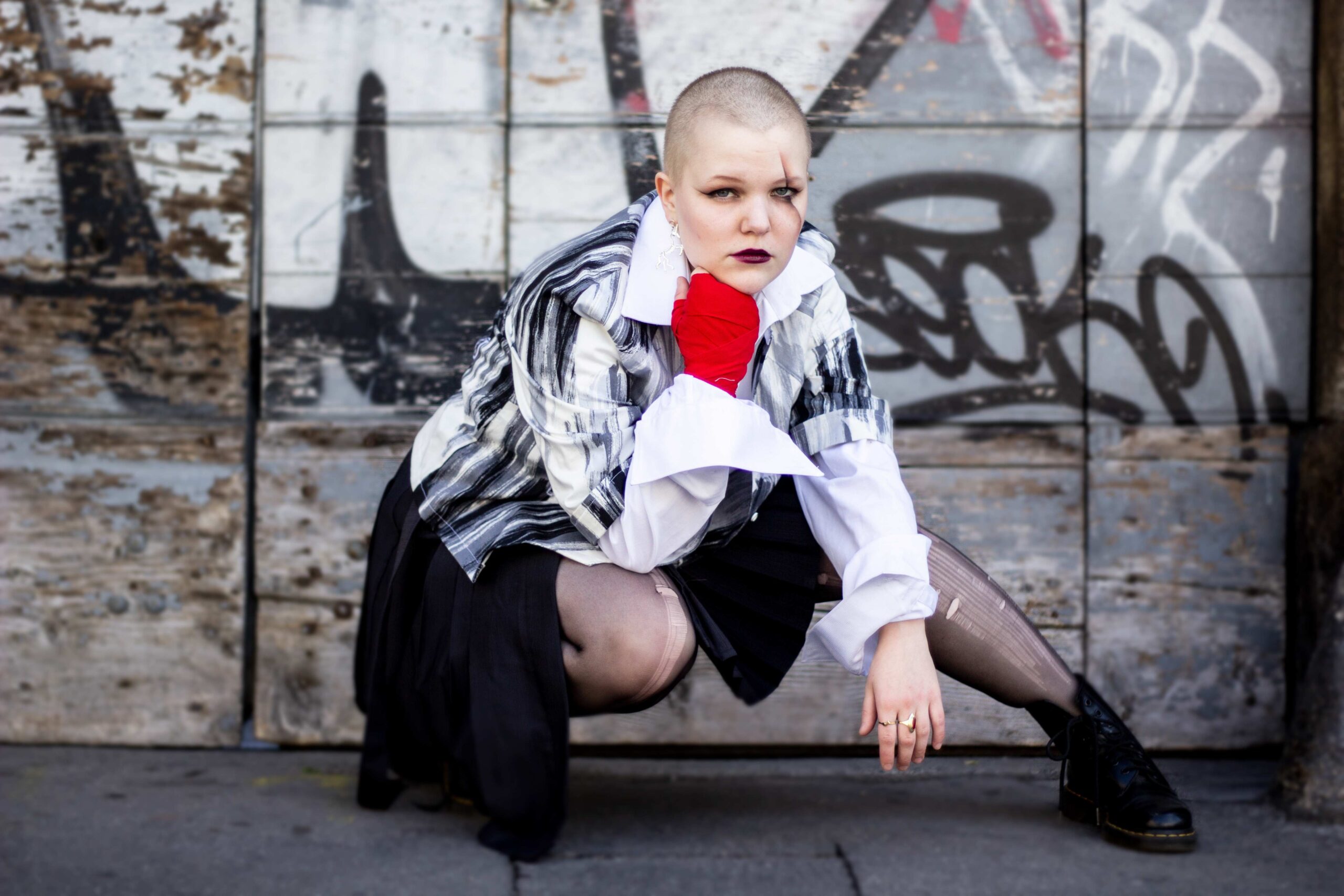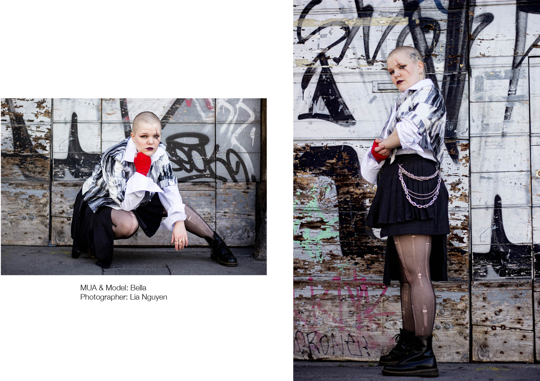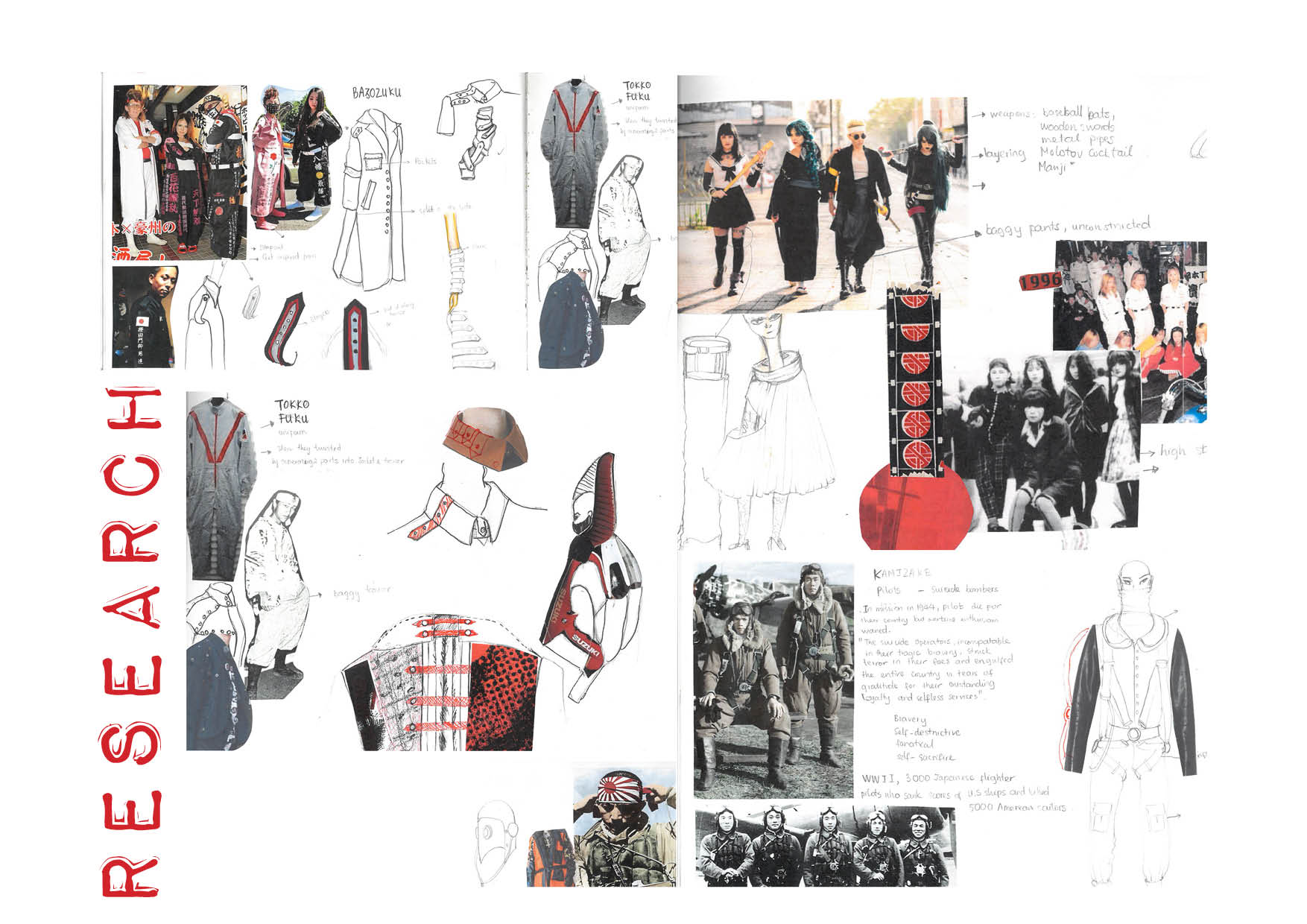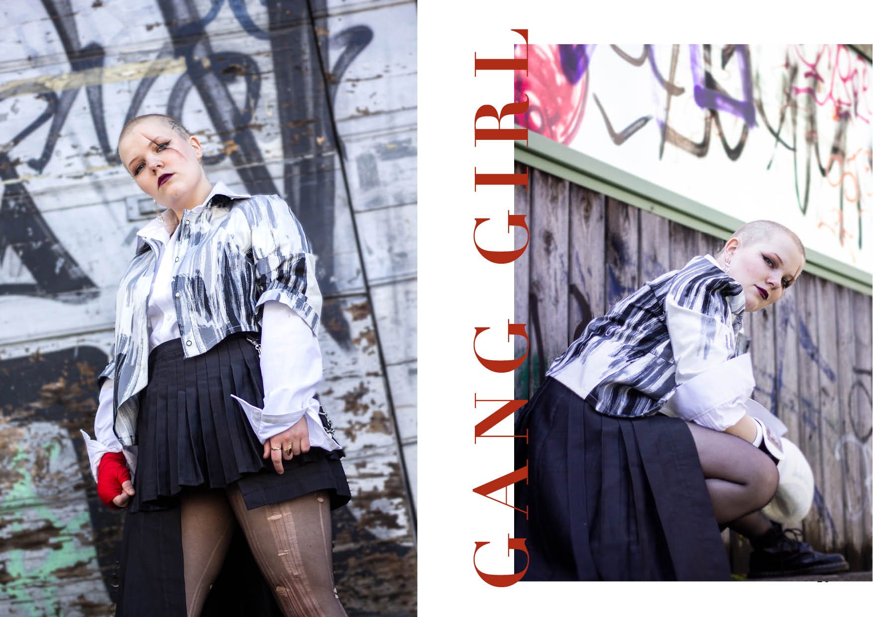 SUKEBAN was a group of Japanese gang girls inspired by Basozuku, a Japanese Motorcycle subcultures in 1950s. They were strongly against the sexual restriction and discrimination from the society where women were not allow to do different things as men. They turned the school-girl and biker uniforms into a symbol of their rebellion by rolling the sleeves, dying brightly hair, carrying razor blades. This collection retraces the image of a school girl with strong rebellious spirits.